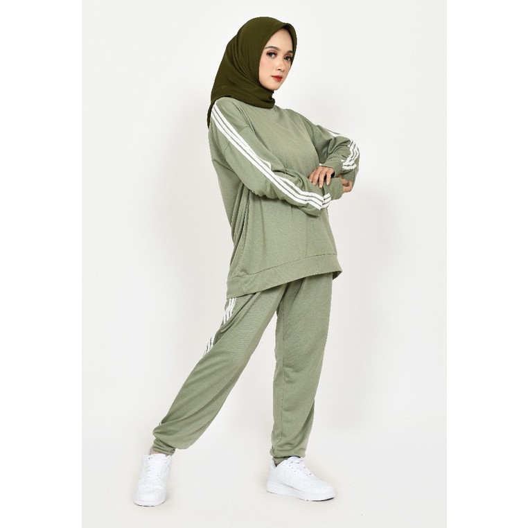 Setelan Olahraga Muslimah Unisex Fit XXL Lengan Panjang Jogger Pinggang Karet Gowes Jogging lezahrasignature Set Sporty Yola