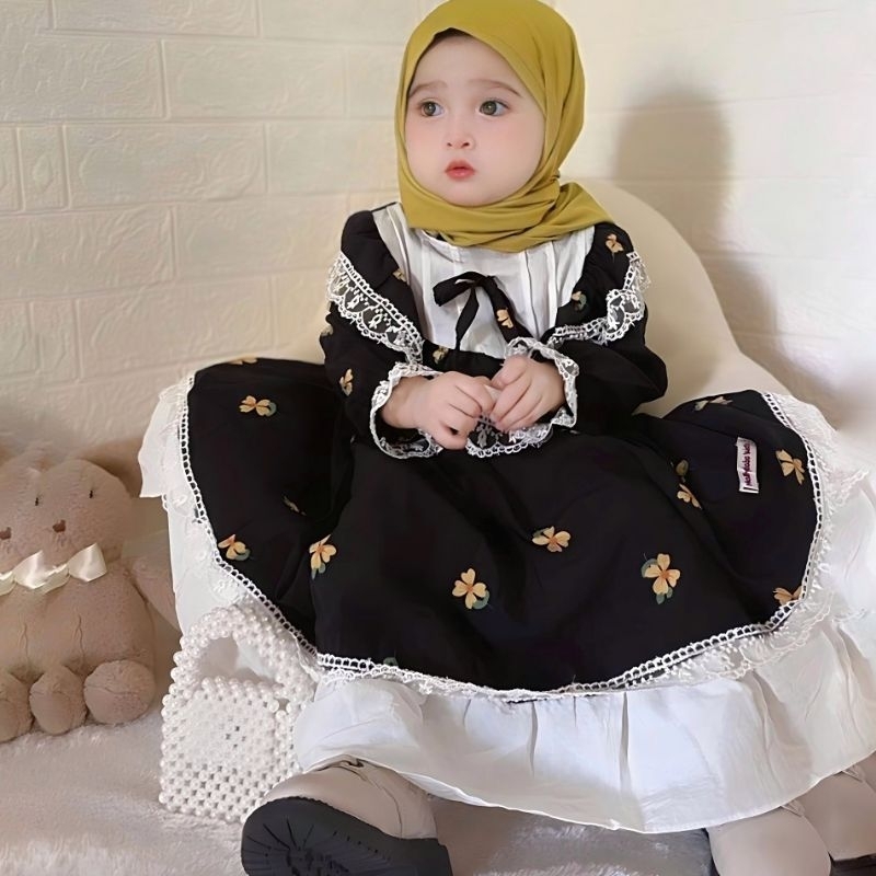 Hallybaba Kids - Gamis Anak Perempuan Patricia Vintage 1-5th Baju Muslim Anak Perempuan Dress Tunik Anak