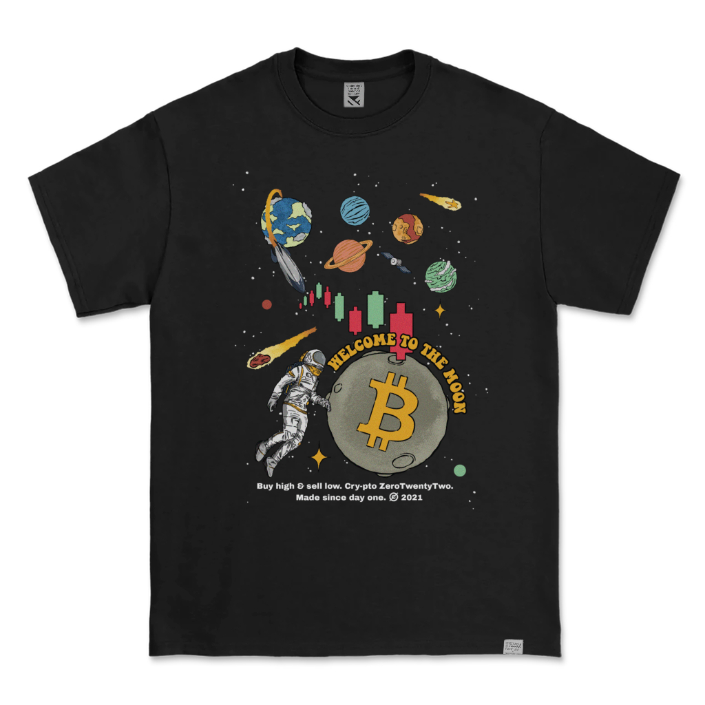 Kaos Distro Parodi Zerotwentytwo T-Shirt Crypto Bitcoin Welcome To The Moon Black | Baju Pria Parody Plesetan Lucu Crypto